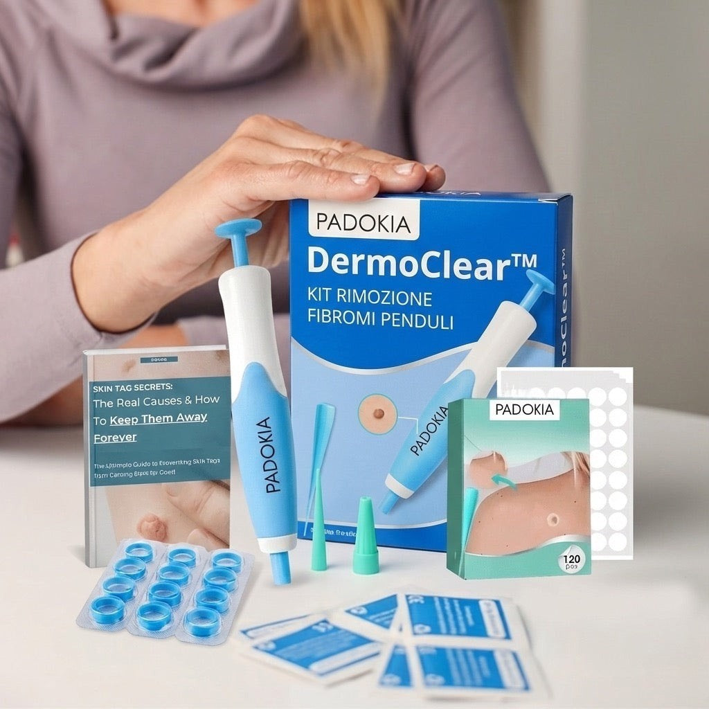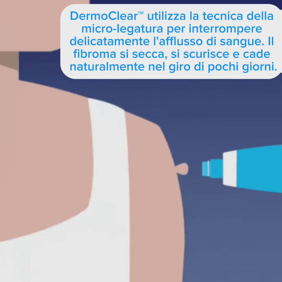 Rimuovi le escrescenze senza sforzo, senza dolore e senza sangue con DermoClear™, la soluzione sicura e approvata per l'uso domestico.